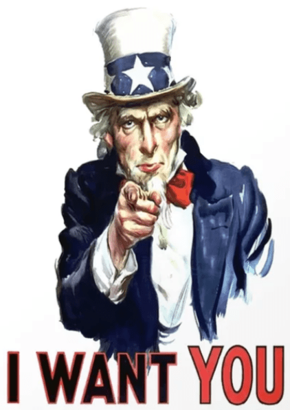 For me this brings up the image of the “Uncle Sam wants you” WWI posters.